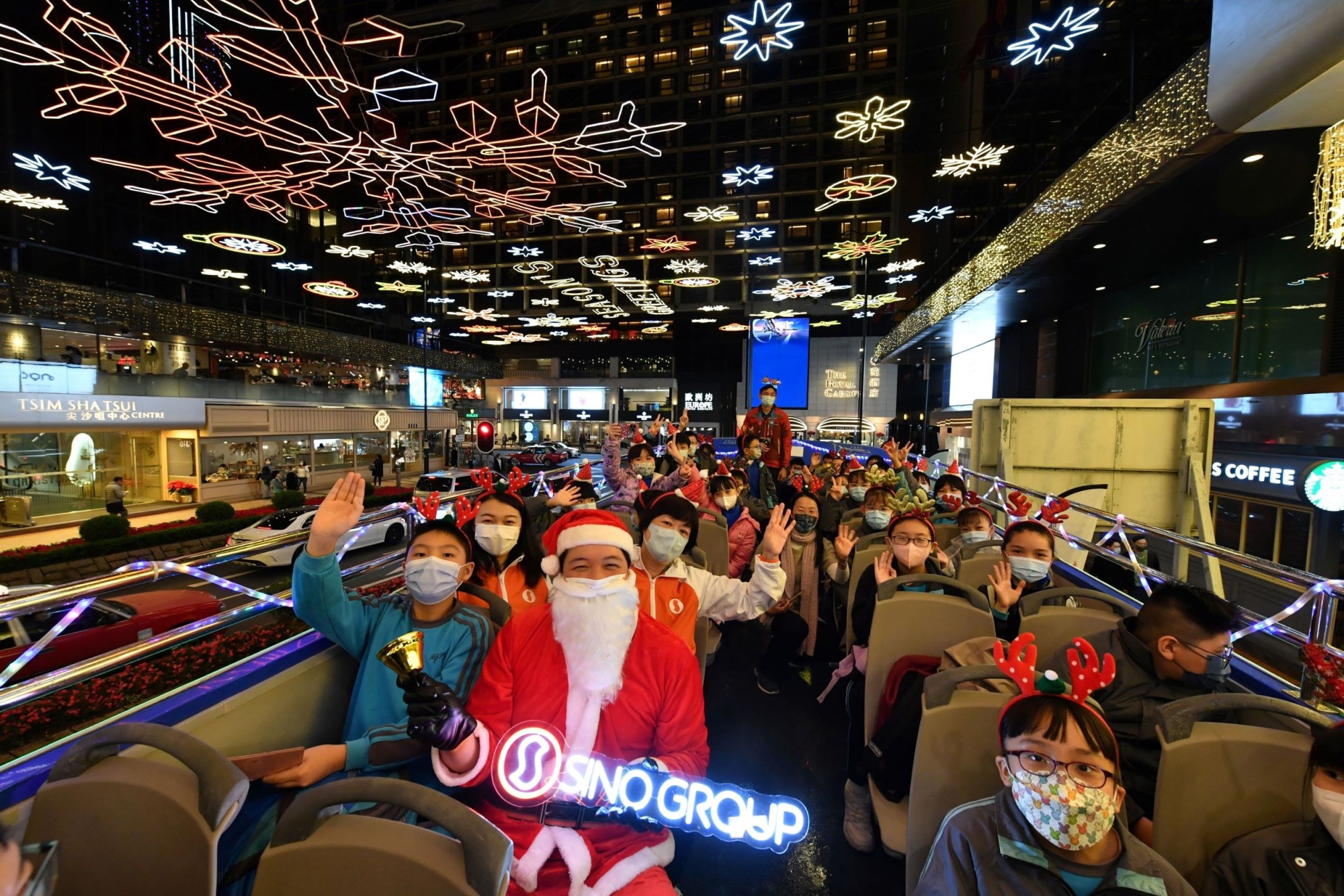 To celebrate the joy of the Christmas season, special open-top night bus tours are also being arranged for families and children in need, so that they can delight in the vibrant colours of the Christmas lights in Tsim Sha Tsui, including the iconic snowflake pattern that is lighting up the facades of Tsim Sha Tsui Centre and Empire Centre as a part of this exuberant annual festive tradition.