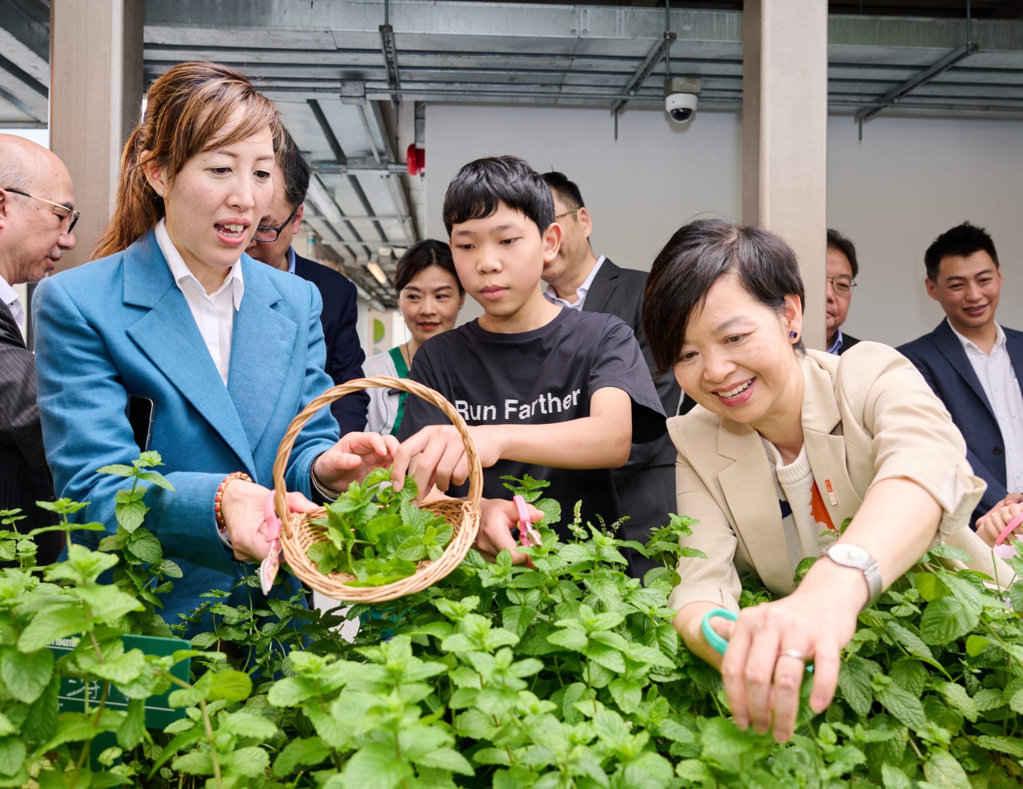 Transitional housing project ‘Wellness Lodge’ located at Castle Peak Road – Tsing Lung Tau, Tsuen Wan is funded by the Government under the ‘Funding Scheme to Support Transitional Housing Projects by Non-government Organisations’. Under the leadership of the Housing Bureau, the project was launched with support from Sino Group and the Ng Teng Fong Charitable Foundation with the leasing of the land at Tsing Lung Tau to the operating organisation Pumen Foundation Limited, at a nominal rent and the provision of subsidies for its construction and operation. ‘Wellness Lodge’ also offers various facilities that integrate elements to promote physical and mental wellness, as well as bursaries to children of residents to foster diverse development opportunities. The first batch of residents progressively moved in since January this year. Today, Mr. Lee Yuet-man, MH, Chairman of Pumen Foundation accompanied Ms. Winnie Ho, JP, Secretary for Housing, and Ms. Nikki Ng, Director of the Ng Teng Fong Charitable Foundation, to visit residents and tour the facilities, including the multi-functional activity room incorporating STEAM (Science, Technology, Engineering, Art and Mathematics) elements and the farming area that is a part of Sino Group’s integrated green community project ‘Farm Together’.