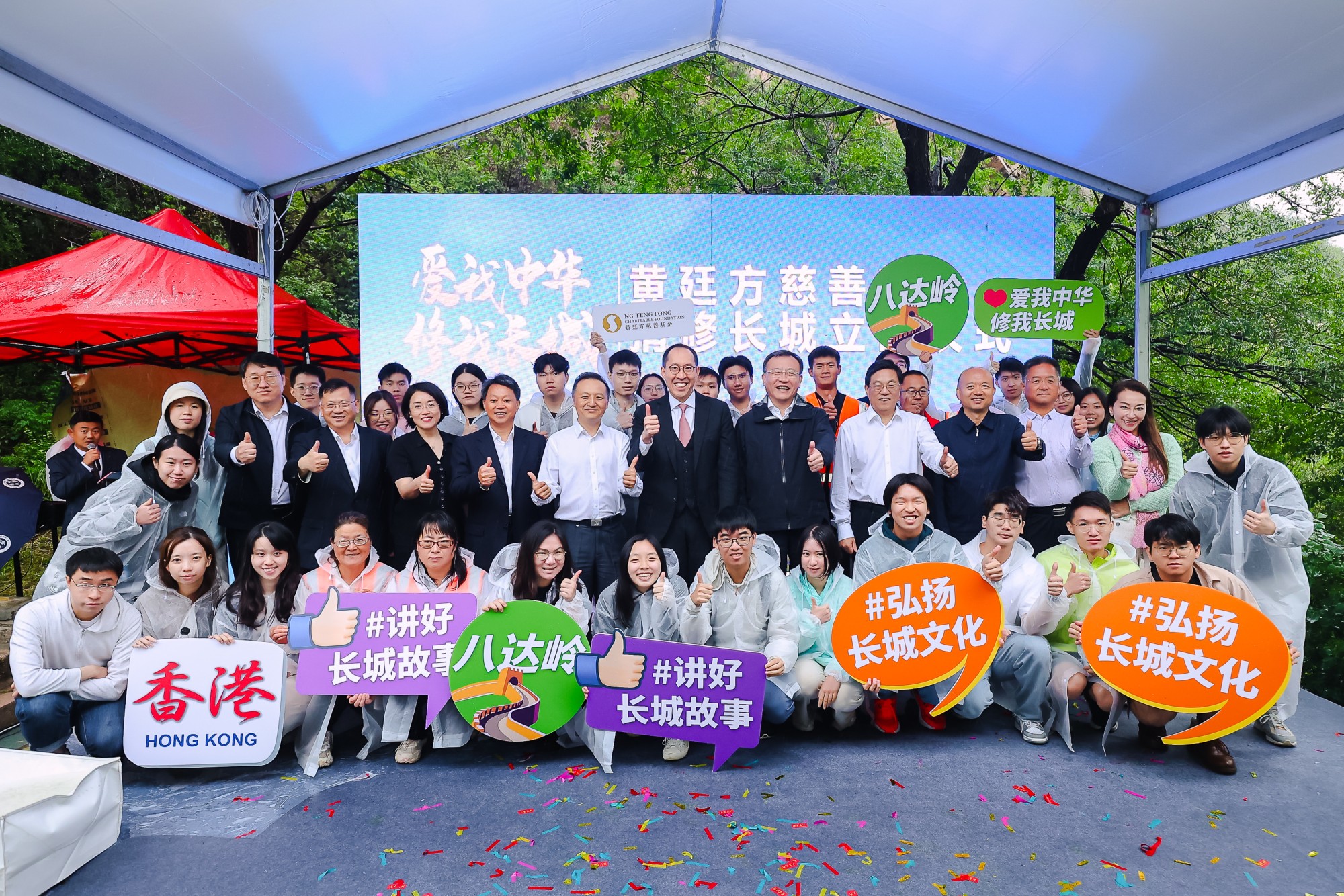 「『爱我中华修我长城』黄廷方慈善基金捐修长城立碑仪式」在北京八达岭古长城脚下举行,出席活动的嘉宾包括北京市文物局局长陈名杰先生、市政协港澳台侨和外事委员会主任赵宏生先生、市侨联党组书记严卫群先生,以及信和集团副主席暨黄廷方慈善基金董事黄永光先生等。此外,38位来自「大湾区共同家园青年公益基金会」的香港学生会员不仅亲自登上长城,见证立碑仪式,更为碑文描金。