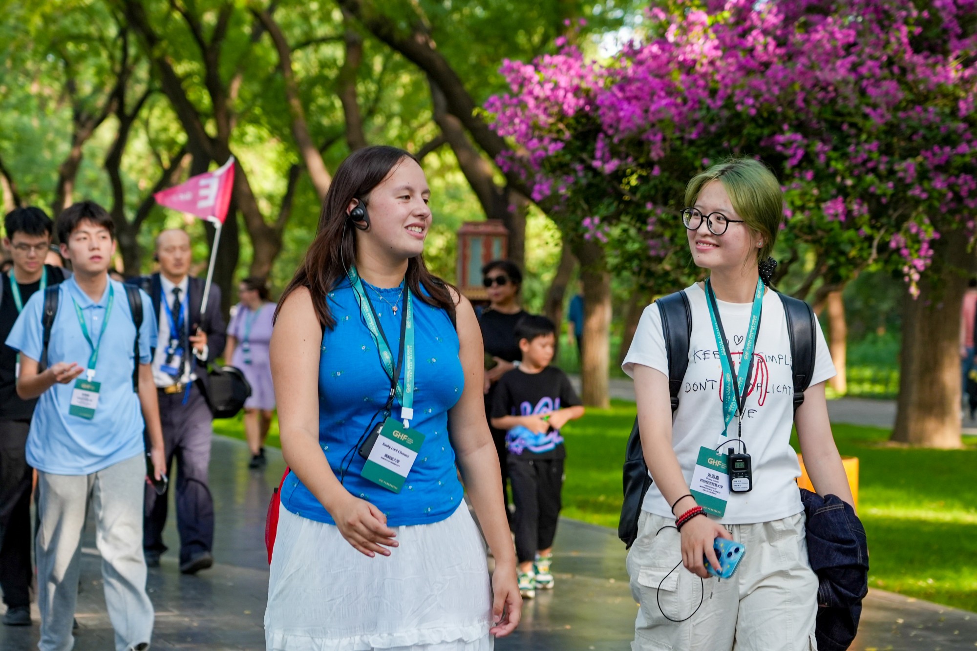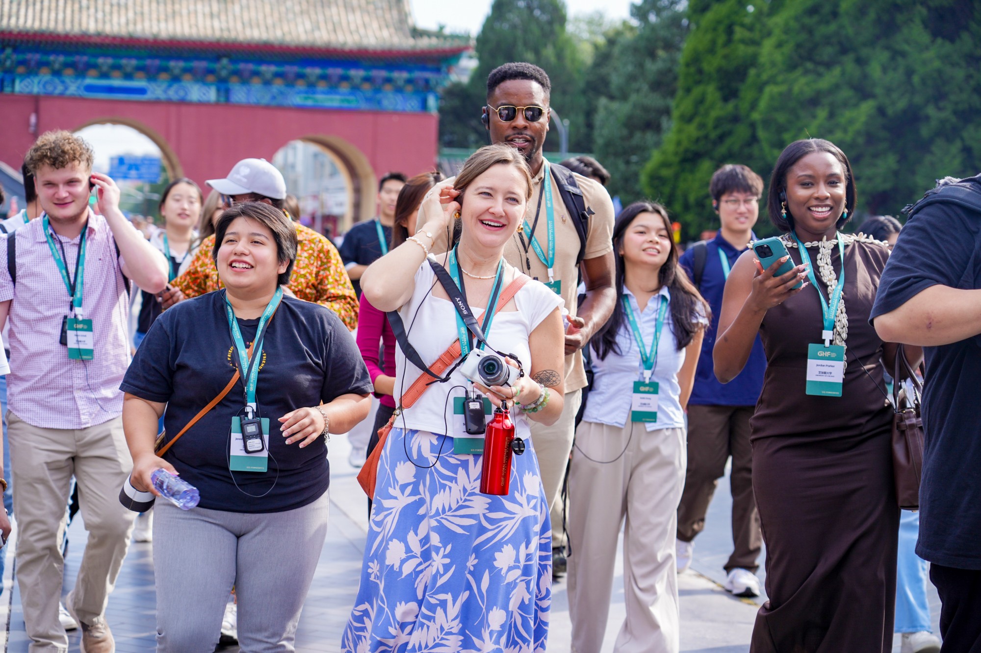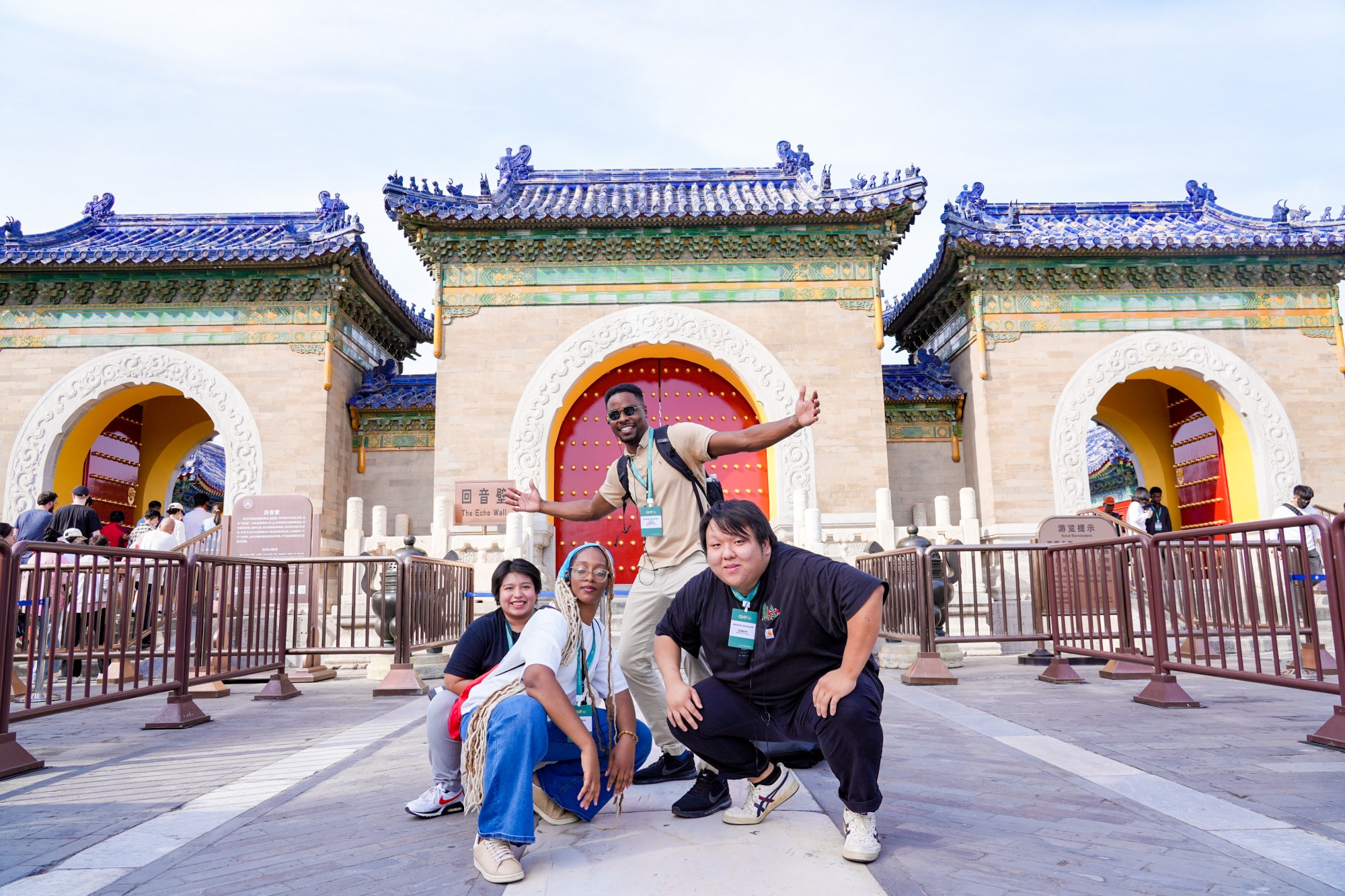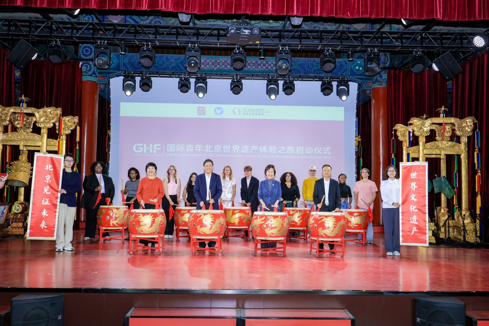 9月25日下午,北京市文物局局长、北京中轴线申遗保护工作办公室主任张立新、北京市政协港澳台侨和外事委员会主任、京促会常务副会长赵宏生、共青团北京市委员会副书记王泰鹏以及北京市公园管理中心副主任张亚红等,和中外青年一起,在北京标志性建筑天坛启动体验之旅。黄廷方慈善基金董事黄永光通过视频欢迎来自美国纽约大学、芝加哥大学、圣彼德大学及田纳西大学等10所高校,以及英国剑桥大学、中国对外经贸大学的学生,开展为期4天的参访交流。这些学生将走进故宫、长城、颐和园等世界文化遗产地,探访798、三里屯、清华大学,游览亮马河,以世界遗产为媒,体验中国优秀传统文化的深厚底蕴,感受北京的现代化发展成就和独特韵味。