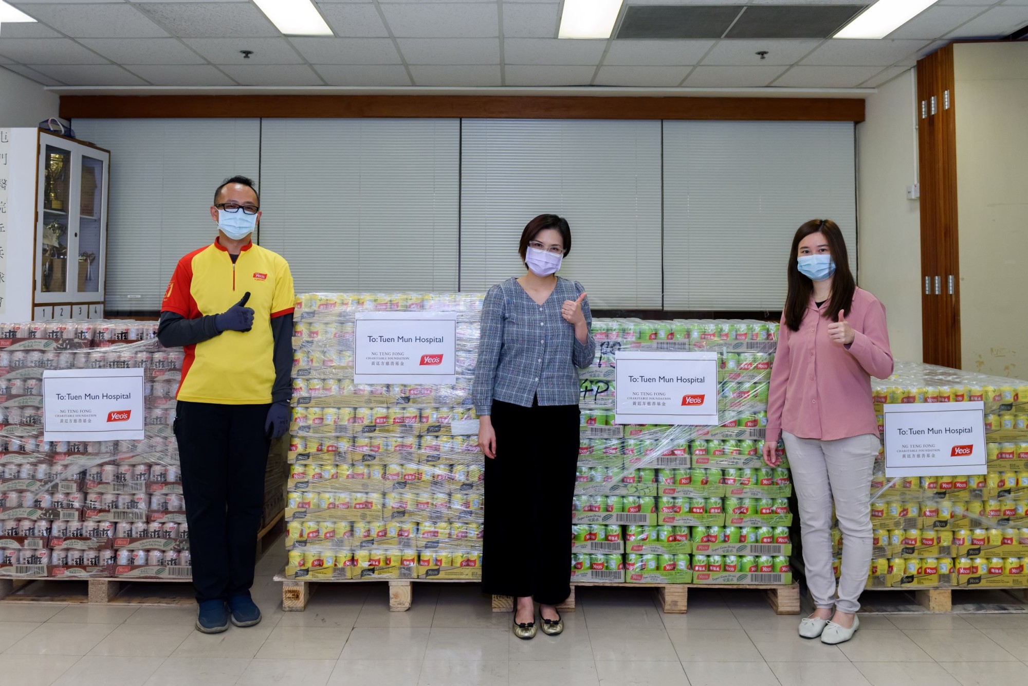 黄廷方慈善基金与Yeo’s杨协成向香港医院管理局辖下19间医院的医护人员送上逾76,000罐杨协成健康饮品,包括清凉爽、菊花茶及甘蔗水,向守护大众健康、努力工作的专业医护人员致以诚心谢意和佳节祝福。