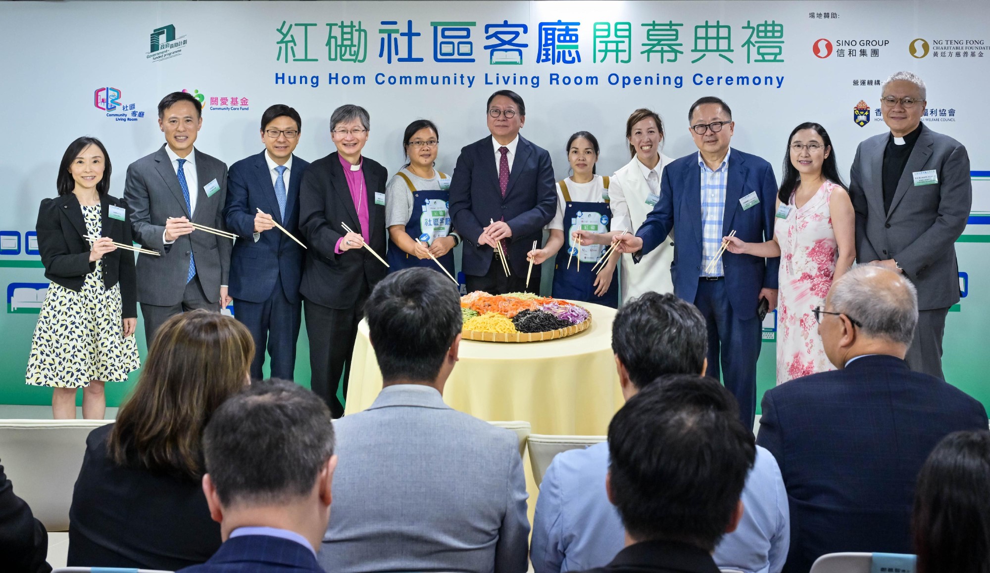 同场出席典礼的主礼嘉宾包括:劳工及福利局局长孙玉菡先生、香港圣公会教省主教长陈讴明大主教、香港圣公会福利协会董事会暨执行委员会主席李国栋医生、香港圣公会福利协会董事会暨执行委员会副主席管浩鸣法政牧师、黄廷方慈善基金董事暨信和集团慈善事务董事黄敏华女士,以及信和集团执行董事田兆源先生等。