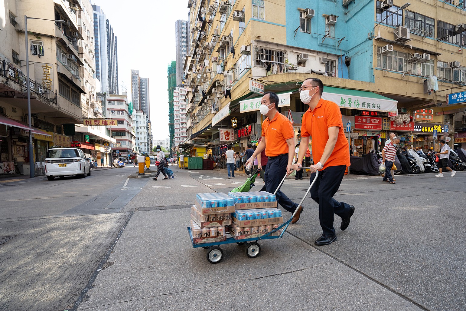 集團義工團隊「信和友心人」與啓愛共融社區中心及北河(明哥)慈善基金於 7 月 22 日派發逾 3,000 罐冰凍楊協成飲料予深水埗街坊,為他們在酷熱天氣下補充水分,特別是「大暑」來臨(2022 年 7 月 23 日)。